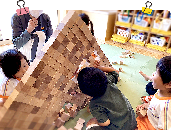 そして、0・1・2歳児の遊びの中で、いろいろなことを感じ学ぶ手助けをします。